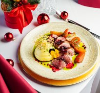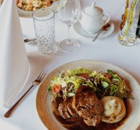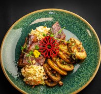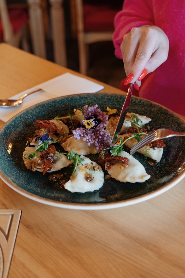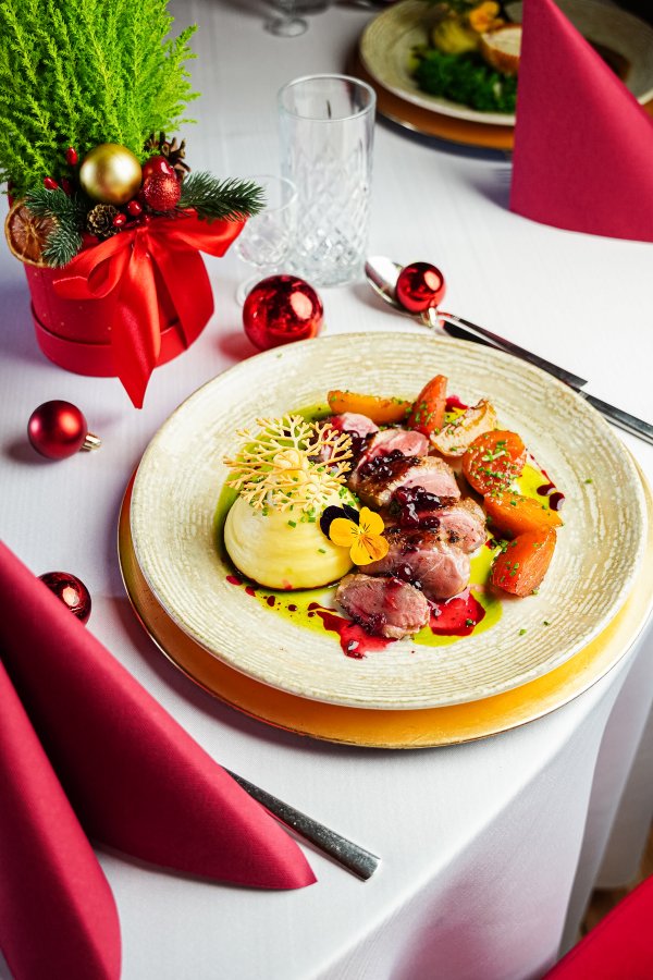 silesian dumplings, red cabbage with cranberries in red wine 75 PLN