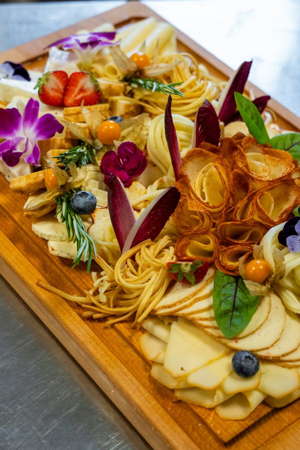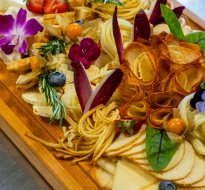 pork tenderloin, chicken breast, bacon, roasted potatoes, garlic sauce, fresh cucumber slices
