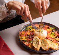 GRILLED CHICKEN BREAST BAKED WITH TOMATOES, PESTO & mOZZARELLA